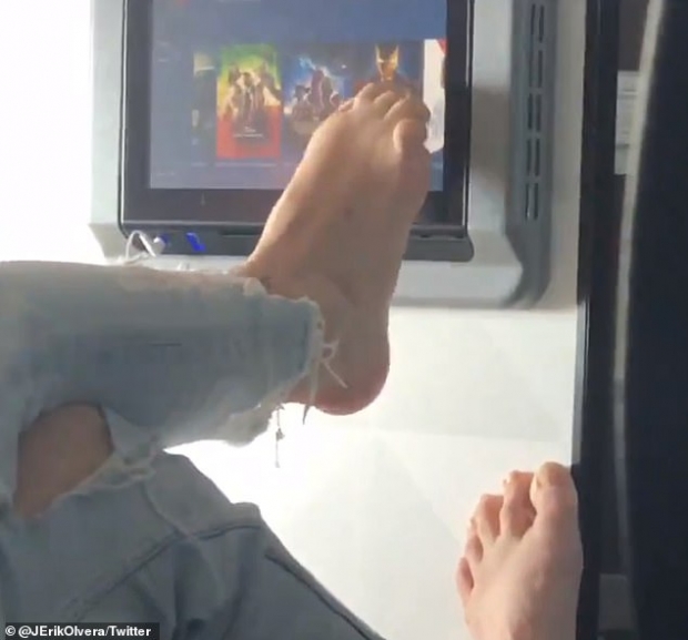 발가락으로 터치스크린 ‘쓱쓱’…美 여객기 위생불결女 논란