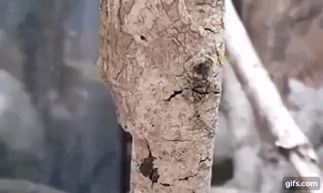 데이브 백쇼(34)라는 이름의 이 사육사는 자택 사육장에서 기르고 있는 남방납작꼬리도마뱀붙이 세 마리가 어떻게 나무 몸통이나 나뭇가지에서 위장하고 있는지를 직접 촬영해 공유했다.