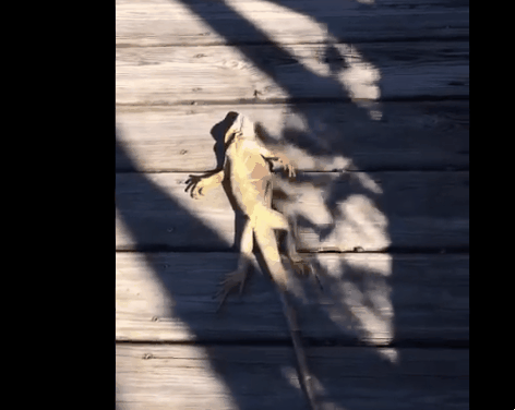 떨어진 이구아나를 건드려보면 생명 반응이 거의 없고 몸 전체가 뻣뻣해져 있지만, 다행히 곧바로 죽는 것은 아니다. 따뜻한 곳으로 옮겨주면 몸이 부드러워지면서 다시 깨어난다.