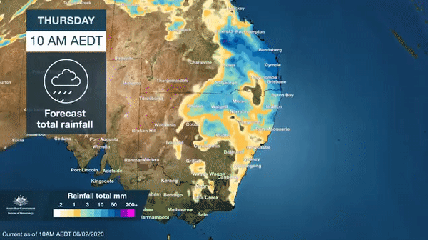 이번 폭우는 퀸즈랜드 주부터 뉴사우스웨일스 주, 빅토리아 주 등 산불이 휩쓸었던 호주 동부 지역을 그대로 따르고 있다. 6일(이하 현지시간)부터 시작된 비는 이번 주말을 거쳐 11일까지 이어져 최고 200㎜가 쏟아질 예정이다.