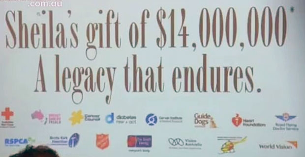 총 1400만 호주 달러(약 111억 원)에 달하는 기부금은 구세군과 적십자사, 월드비전, 항공의료기관, 동물보호단체와 청소년단체, 유방암 연구센터, 희소병 연구소, 심장병 단체 등에 돌아갔다. 할머니는 이 돈이 노숙자 주거 문제 해결과 닥터헬기 확충, 청소년 장학금, 유기견 보호 등에 사용되기를 바랐다.