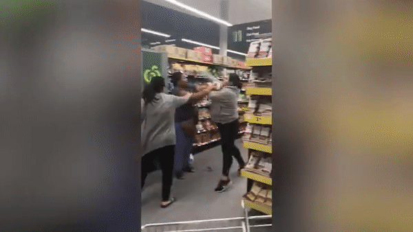 쇼핑 카트에서 화장지 한 팩을 집어 들려는 제3의 여성을 딸인 여성이 주먹질했고 맞은 여성도 맞서 싸우자 엄마인 여성까지 합세해 3명의 여성이 화장지를 둘러싸고 머리카락을 잡아당기고 고성을 지르며 주먹다짐하는 상황이 연출됐다.