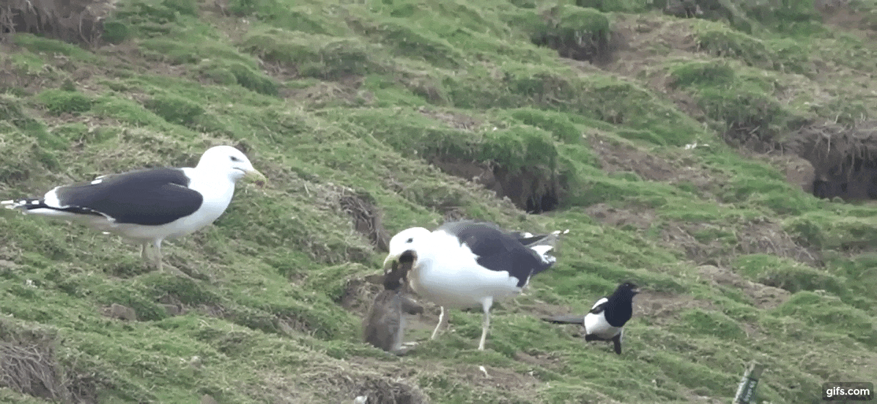 야생보호국의 한 직원이 촬영한 이 영상에는 큰검은등갈매기 한 마리가 굴속에 숨어있던 토끼를 찾아내 사냥한 모습이 고스란히 담겼다.