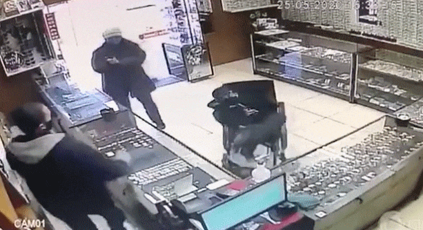 CCTV에 잡힌 당시의 상황을 보면 보석상에선 주인과 한 손님이 진열대를 사이에 두고 대화를 나누고 있다. 주인을 열심히 물건을 보여주고 손님은 주인이 꺼내준 무언가를 살펴보고 있다. 이때 전동휠체어를 타고 한 남자가 들어선다. 가만히 살펴보면 남자는 두 팔이 없는 장애인이다.