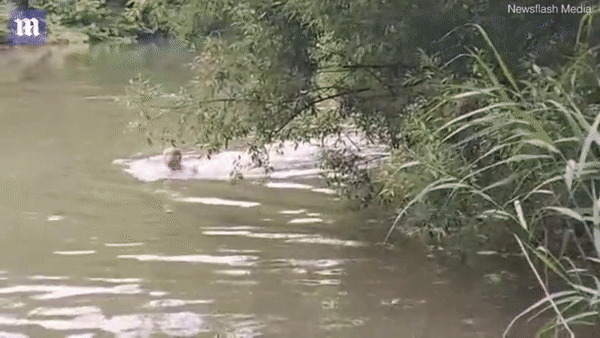그 순간 아이반이 흙탕물로 물속이 잘 보이지 않는 데다가 유속도 꽤 빨라 자칫 위험할 수 있는 강물로 뛰어들었다. 그는 재빨리 헤엄쳐 물속으로 사라지던 새끼사슴을 붙잡는 데 성공했다.