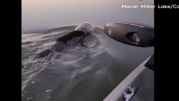 브라이언 허트와 그의 아내 트리시아, 아들 브래디등 이들 한가족은 마침 호수에서 보트를 타고 낚시를 하는 중이었다. 그때 플라스틱 용기가 머리에 끼인 한 동물이 호수에서 힘겹게 수영을 하는 모습을 발견했다.