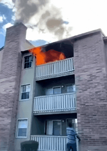 문제는 현장에서 빠져나오지 못한 레이첼과 세 살배기 아들이었다. 마침 화재 현장 앞을 지나던 전직 해군인 필립 블랭크(28)는 도와달라는 레이첼의 외침을 듣고 발걸음을 멈췄다. 탈출로는 베란다뿐인 상황이었고, 1층에는 이웃 남성 한 명이 떨어질 누군가를 받아내려는 듯 서성이고 있었다.