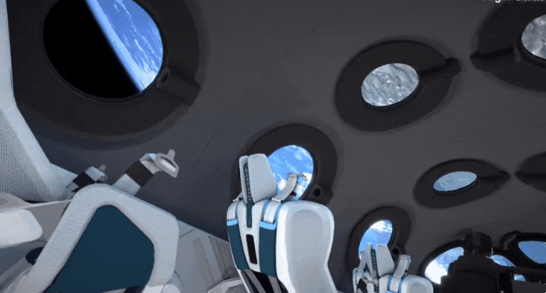 공개된 우주왕복선 스페이스십2 내부에는 총 6개의 좌석이 있으며, 좌석 시트는 알루미늄과 탄소섬유로 제작됐다. 각각의 좌석 뒤에는 스크린이 장착돼 있는데, 이 스크린을 통해 실시간 비행 데이터 및 우주선 외부에 있는 카메라로 촬영한 우주의 모습을 HD 화질의 영상으로 볼 수 있다.