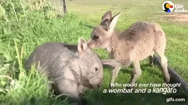 동물전문 매체 더도도는 최근 유튜브를 통해 호주 뉴사우스웨일스주(州)의 작은 마을 릴스톤에 있는 한 야생동물보호소에서 서로 종은 다르지만 끈끈한 우정을 쌓고 있는 웜뱃과 캥거루를 소개했다.