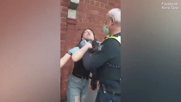 동영상은 건장한 남성 경찰관이 반항하는 여성의 목을 움켜 쥐고 체포를 하는 모습부터 시작한다. 여성은 "당신이 내목을 조르고 있다"를 계속 외치면서 숨을 쉴 수 없음을 호소했다. 이 여성은 다른 여성 경찰을 발로 차기도 하면서 반항을 이어갔다.