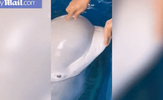 지난 12일 광둥성 선전시 소재 수족관 조련사가 3살 난 벨루가 머리를 사정없이 쿡쿡 찔렀다. 관련 영상에는 조련사가 검지손가락과 양손 모두를 이용해 밸루가 머리를 누르고 흔들기를 10여 차례 이상 반복하는 모습이 담겼다. 보도에 따르면 조련사는 벨루가 머리가 얼마나 부드러운지 보여주기 위해 이 같은 행동을 했다.