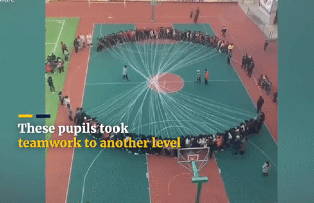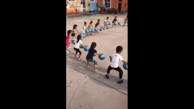 22일 중국 홍보 계정에 올라온 영상에는 둥글게 원을 그리고 선 유치원생들이 리듬에 맞춰 반시계방향으로 도는 모습이 담겨 있다. 어린이들은 양손으로 공을 튕기며 한 칸씩 일정하게 자리를 옮겼다. 마치 공장 자동화 기계의 공정을 보는 듯 하다. 계정 운영자는 협력을 가르치는 현장이라고 강조했다. 농구공을 활용한 훈련은 중국 유치원에서 매우 보편적이다.