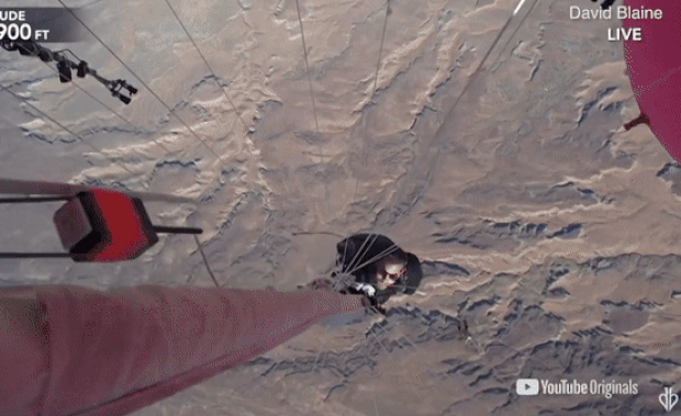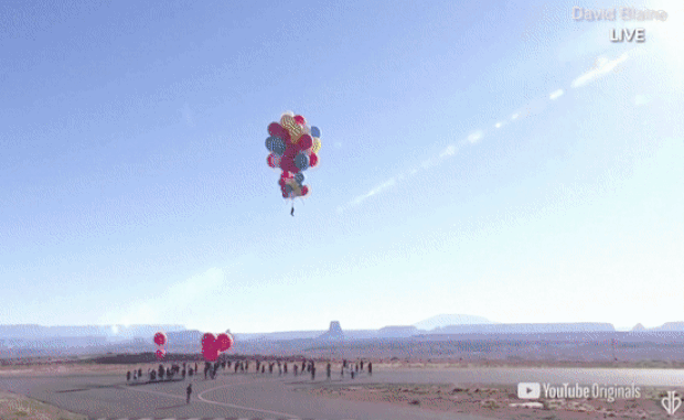 헬륨 가스를 채운 특수풍선 52개에 매달린 블레인은 자신이 예상했던 5486m보다 훨씬 더 높은 7590m 상공까지 도달했다. 백두산(2500m)보다 세 배 높고, 에베레스트산(8848m)에 약간 못 미치는 높이다.