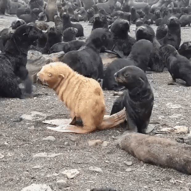 물개판 ‘미운오리새끼’…무리서 외면당한 알비노 새끼 발견(영상)