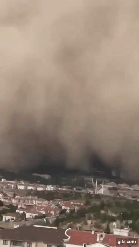 만수르 야바시 앙카라 시장실이 공개한 영상에는 연갈색의 거대한 모래폭풍이 건물들을 뒤덮어가는 극적인 모습이 담겨 있다.