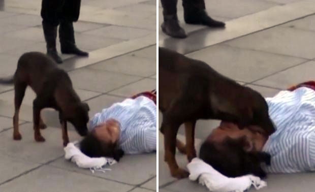 배우 ‘기절 연기’ 보고 걱정돼 달려온 유기견…뜻밖의 감동 (영상)
