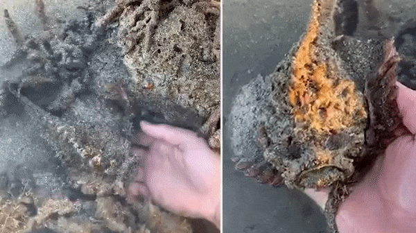 그는 틱톡 영상에서 “저것은 스톤피시다. 이 물고기는 위쪽에만 가시가 있을 뿐”이라고 설명한 뒤 슬리퍼를 신고 바위 옆에 있는 스톤피시를 향해 조심스럽게 다가간다.
