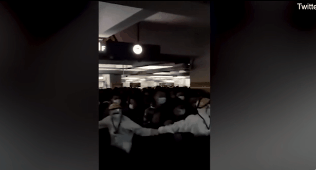 공개된 영상에서는 공항 지하에 마련된 코로나19 검사장소로 이동하는 수많은 직원들과, 이들의 이탈을 막기 위해 인간 띠를 만들어 통제에 안간힘을 쓰는 방역당국 직원들의 모습을 생생하게 볼 수 있다.