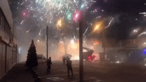 화마에 미리 터진 새해 폭죽 수천 발, 통제불능 불꽃놀이 난감 (영상)
