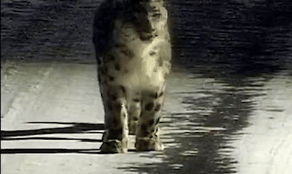 중국판 트위터인 웨이보를 통해 공유된 영상을 보면, 이 눈표범은 다 자란 개체로, 곳곳에 눈이 덮힌 텅빈 거리를 서성거리다 잠시 멈춰 주변을 확인한다. 잠시 뒤 이 눈표범은 몇 발자국을 더 걷는 듯하더니 길 한복판에 누워 뒹굴기 시작하는 데 그 모습이 고양이가 애교를 부리는 것과 흡사하다.