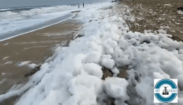 벵골만에 인접한 마리나 해변은 총길이 12㎞로 세계에서 두 번째로 긴 해변이다. 인도의 대표적 관광지로 꼽히지만 매년 ‘몬순’이 지난 뒤에는 해변 전체가 독성 거품 때문에 몸살을 앓는다. 지난해 겨울에 이어 올해도 마리나 해변은 어김없이 거품 바다로 변했다.