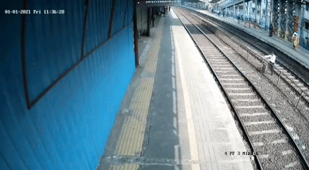 아찔한 철길 무단횡단…새해 첫날 황천길 갈 뻔한 인도 남자 (영상)