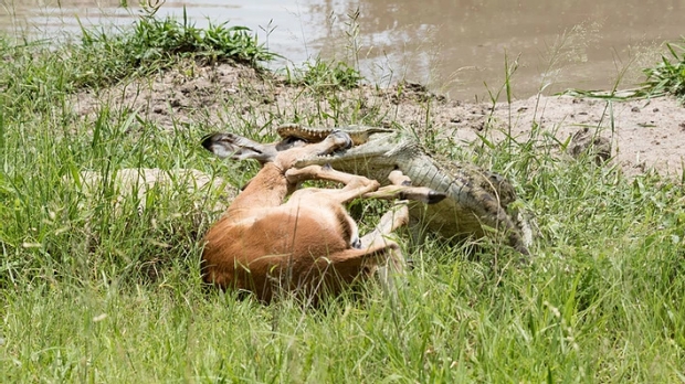 9일(현지시간) 영국 일간 데일리메일에 따르면, 최근 남아프리카공화국(이하 남아공) 크루거 국립공원에서 젊은 임팔라 한 마리가 악어의 습격에서 간신히 벗어나는데 성공했다. 그러나 기쁨도 잠시 단 몇 초 만에 표범에게 잡혀 짧은 생을 마감했다.