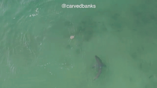 호주 뉴사우스웨일스주 시드니의 수중사진작가 루이스 로플린은 지난달 28일 서섹스 인렛 해안에서 사냥 중인 백상아리를 목격했다. 로플린은 “해변과 10m도 채 떨어지지 않은 얕은 바다에서 먹잇감을 노리는 백상아리를 봤다. 멀지 않은 곳에 서핑객이 있었지만 다들 알아 차라지 못했다”고 밝혔다.