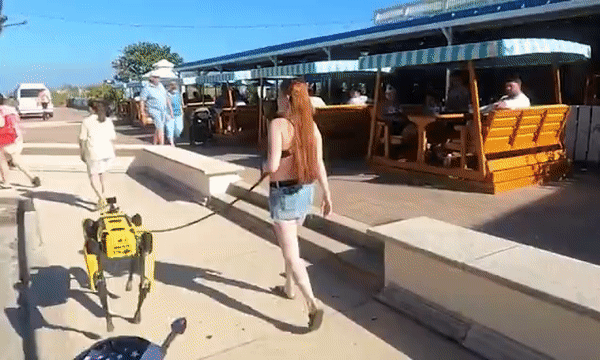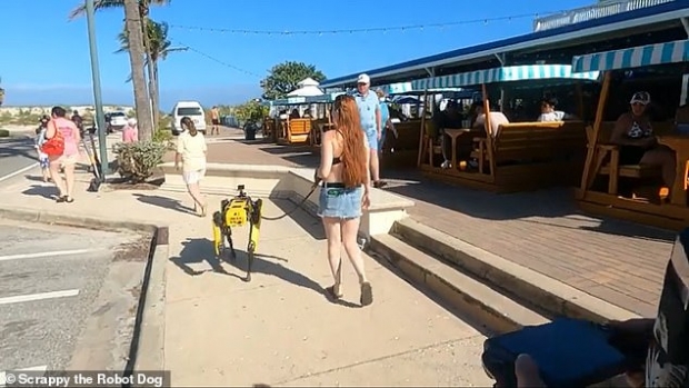 美 플로리다 해변서 여성주인과 함께 산책하는 로봇개 포착 (영상)
