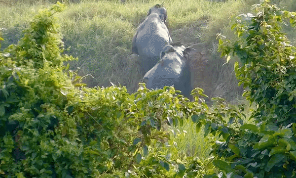 도랑에 빠진 야생 코끼리 한 쌍, 서로 도와 탈출하는 놀라운 순간 (영상)