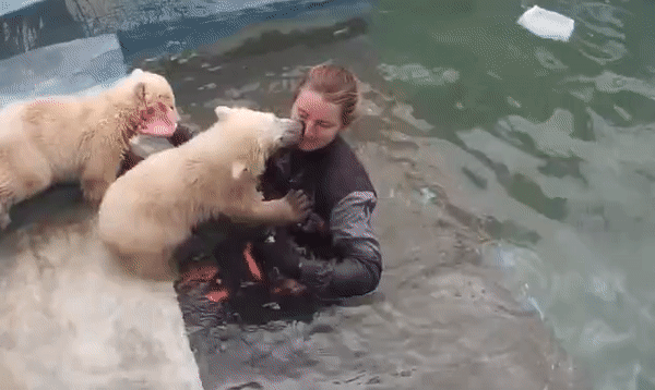17일 시베리안 타임스 등 외신 보도에 따르면, 러시아 겔렌지크 사파리공원 측은 지난해 12월 이 공원에서 태어난 북극곰 남매가 앞으로 살아가는 데 있어 필요한 헤엄치는 법을 며칠 전 담당 사육사에게 배우는 모습을 영상에 담아 공개했다.