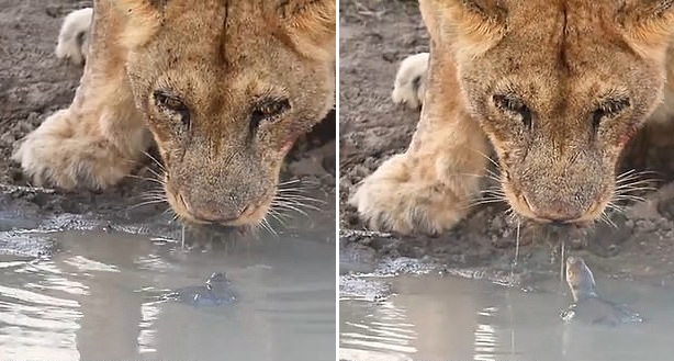 “여긴 내 땅!” 강물 마시러 온 사자 연이어 공격한 겁 없는 거북 (영상)