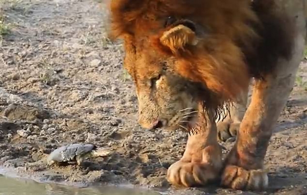 영국 일간 데일리메일에 따르면, 최근 남아프리카공화국 크루거 국립공원 내 말라말라 사설 야생동물 보호구역에 있는 샌드 강에서 민물 거북의 일종인 테라핀 한 마리가 사자 두 마리를 겁도 없이 연이어 쫓아냈다.