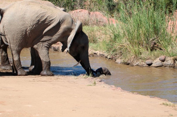새끼 코끼리가 강물의 깊은 곳이나 빠른 물살에 휩쓸려 물에 빠져 목숨을 잃는 사례는 드물지 않다. 이를 막기 위해 코끼리 무리에서도 경험이 풍부한 연장자들은 항상 어린 코끼리들에게 신경을 쓰고 있어 위기의 순간에 대처할 수 있다는 것이다.