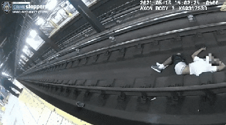 트위터에 공개된 바디캠 영상은 한 남성이 선로 한가운데 떨어져 쓰러져 있는 상황에서, 열차 한 대가 플랫폼을 향해 달려오는 영상을 담고 있다.
