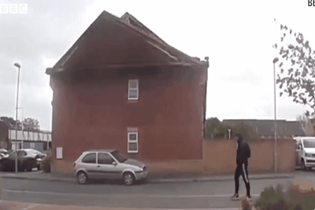[영상] 눈앞에서 지붕 무너져도 무심한 듯 지나치는 英 남성