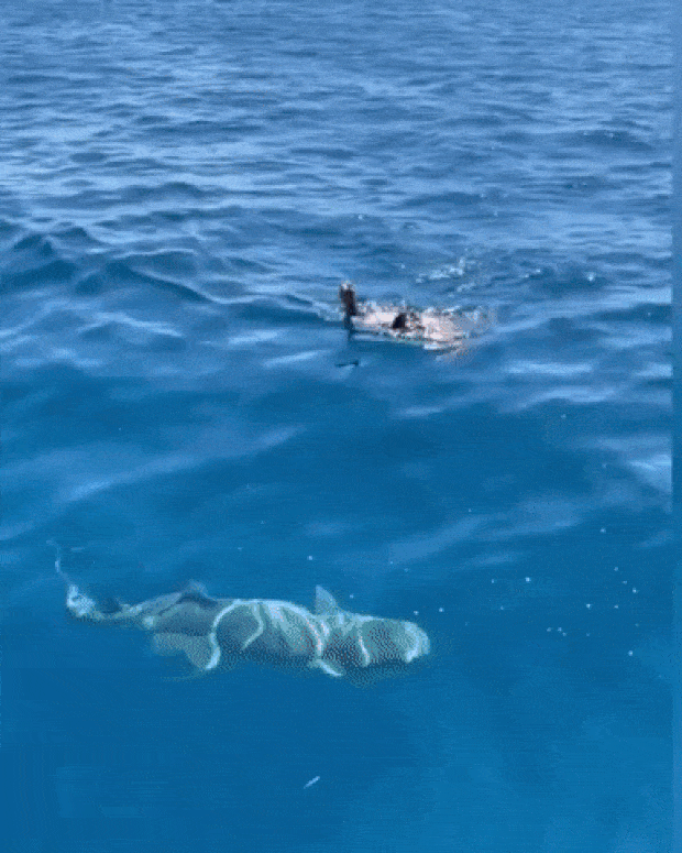 나자포프가 촬영한 영상에는 요트 선원 모하마드 라케브가 한 손으로 새를 받치고 다른 한 손으로 거친 물살을 가르며 헤엄치는 모습이 담겨 있다. 코앞에 2m 길이 상어 여러 마리가 어슬렁거리고 있는데도 선원은 전혀 신경 쓰지 않는 눈치였다. 지친 모습이 역력한 선원은 “물살이 거세다”고 숨을 헐떡이며 동료 손을 잡고 다시 요트로 올랐다.