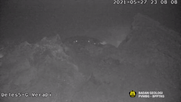 사진 공개 후 유성에 대한 관심이 급증하자 인도네시아 지질재난기술연구개발연구소(BPPTKG)는 관련 CCTV를 추가로 공개했다. 므라피산 동쪽에 설치된 관찰 카메라에도 27일 밤 11시 8분경 분화구로 떨어지는 반짝이는 물체가 포착된 것이다.