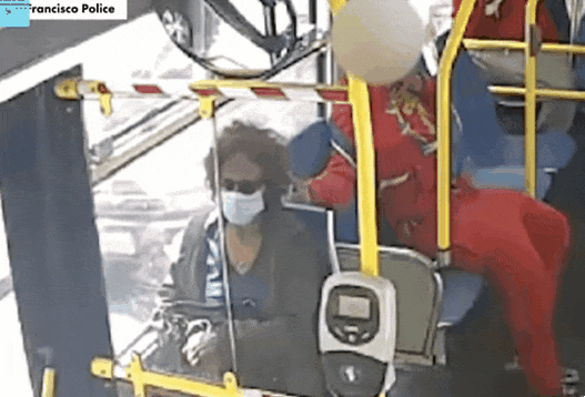 지난 2일 공개된 영상은 지난달 2일 샌프란시스코 시빅센터 인근을 지나던 한 버스의 내부를 담은 것으로, 빨간색 긴 상의와 바지를 입은 10대 남성과 앞 좌석에 앉은 중년 여성의 모습을 볼 수 있다.