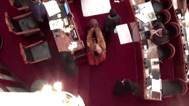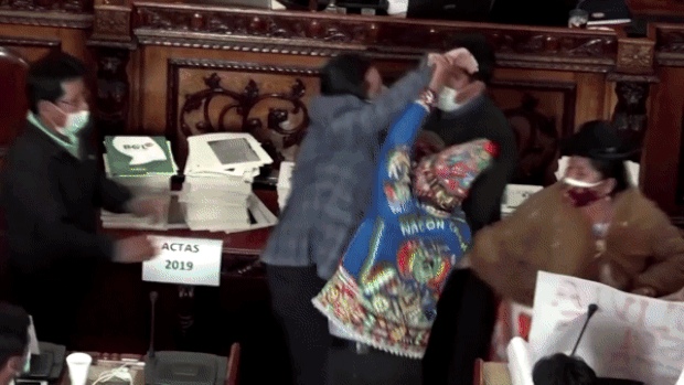 카스티요 장관의 이 같은 발언 이후 국회에는 고성이 오갔다. 특히 야당인 MAS 소속 안토니오 가브리엘 의원과 야당인 크리모스당 소속 헨리 몬테로 의원 간 멱살잡이에 현장은 아수라장으로 변했다. 두 사람의 실랑이는 가브리엘 의원의 주먹에 맞은 몬테로 의원이 거칠게 반격하면서 몸싸움으로 변질됐다. 주먹질과 발길질을 주고받는 두 의원을 뜯어말리기 위해 다른 의원들까지 몰려들면서 국회는 그야말로 난장판이 됐다.
