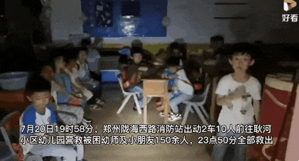 하오칸 비디오 등 현지 매체가 보도한 해당 영상은 지난 20일 저녁 7시 58분경, 홍수로 정전이 된 정저우의 한 유치원에서 유치원생 150여 명이 갇혀있다 구조되는 모습을 담고 있다.
