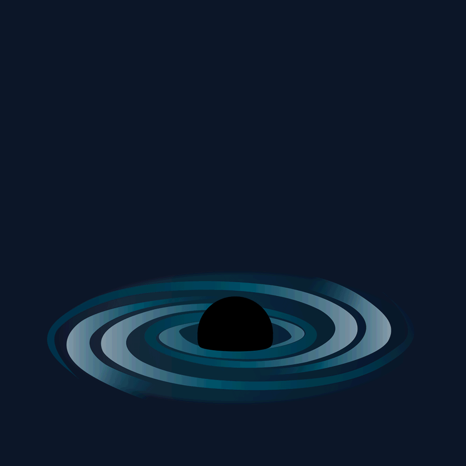 그런데도 뒤쪽의 빛을 관측할 수 있는 이유는 블랙홀이 공간을 일그러뜨려 빛과 주변의 자기장이 휘어지기 때문이다.