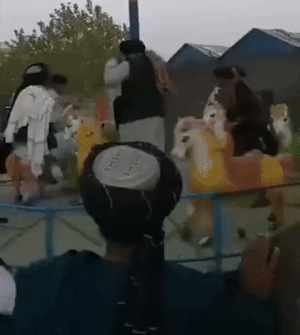 이날 샬리지 기자가 전한 영상에서는 각종 놀이기구에 탑승한 탈레반 전사들을 확인할 수 있었다. 카불 하미드 카르자이 국제공항에서 8㎞ 떨어진 카불놀이공원을 접수한 전사들은 터번을 두른 채 사이좋게 범퍼카에 올랐다. 이리저리 들이받고 들이받히며 즐거워했다. 이를 훤히 드러내고 웃는 전사들 손에는 소총이 들려 있었다. 회전목마 삼매경에 빠진 다른 전사들은 다음 순서를 기다리는 전우들을 향해 손을 흔들어 보이기도 했다.