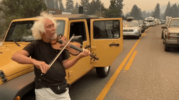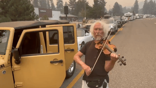 대형산불로 꽉 막힌 길…피난민 위로한 美 노신사의 바이올린 (영상)