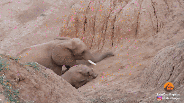 [영상] ‘영차영차’ 자꾸 미끄러지는 새끼…포기 안 한 대장 코끼리