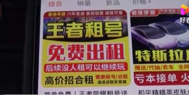 중국 국영언론 CCTV에 따르면 미성년자 게임 유저를 겨냥한 게임 계정 임대 업체들이 대형 인터넷 유통 업체를 통해 불법 판매를 시도 중인 것으로 드러났다.