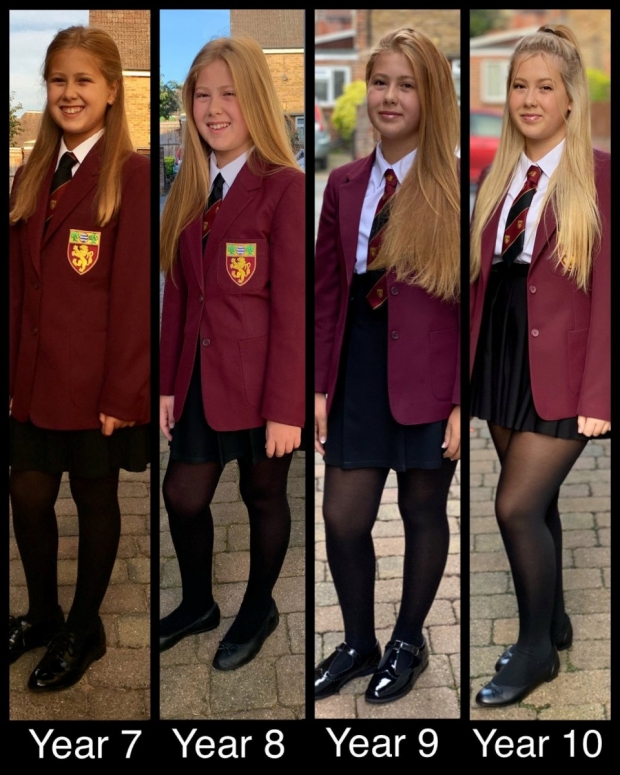 영국 일간지 미러 등 현지매체 보도에 따르면, 서리주(州) 레드힐에 거주하는 다그니 버넷(53)은 딸 클로이(14)가 초등학교에 입학했을 때부터 10년 넘게 매년 첫 등교일에 기념사진을 찍어왔다.