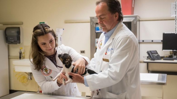 이 사실을 알게 된 미국 텍사스주 댈러스에 있는 한 동물보호단체가 생후 13주였던 시기를 이 대학 부속 동물병원으로 데려왔었다.