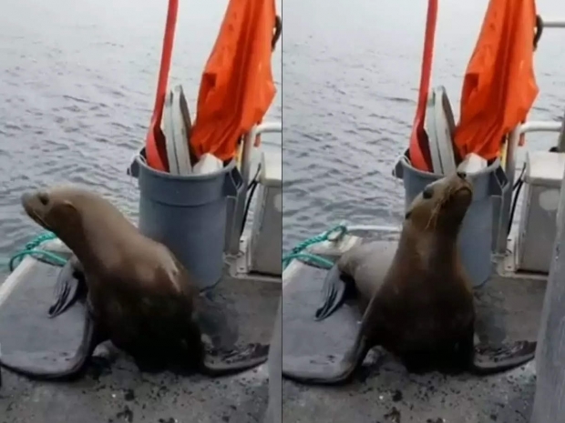 범고래 피해 보트 위로 피신한 바다사자 쫓아낸 加여성 논란