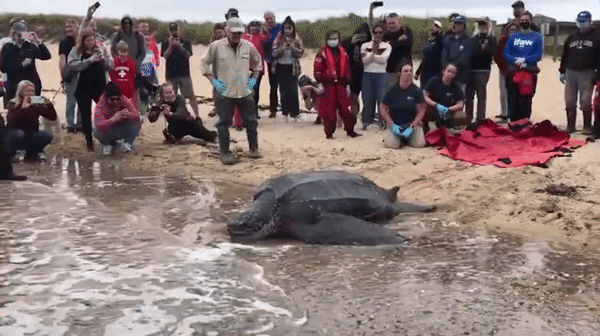 [영상] 270㎏ 대형 ‘장수거북’ 美 갯벌서 구조, 무사히 바다로